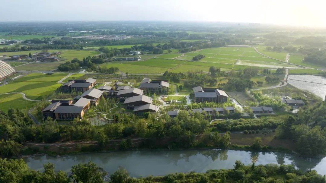 中国牙谷产业园于2018年设计,2021年竣工,总建筑面积为386,000平方米。园区以场地中央的山脉和山谷为界,划分为东西两大规划区块。东侧主要为办公和生活区,包括多功能馆、人才公寓和检测检验中心;西侧则为工业建筑区,根据生产需求布局了16座标准厂房及其配套设施。 设计团队 邱小勇、谭奔、梁哲、王朋、罗子健、周剑波、李红霞、刘锦、梁登文等 天府农博酒店 Tianfu Agricultural Expo Hotel “水田院”构建川人诗意田居