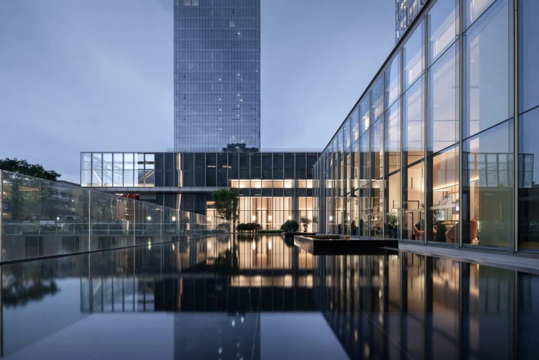 成都生物城凯悦嘉轩酒店位于成都生物城内,毗邻永安湖森林公园。总建筑面积约43500平方米,客房数270间。设计以错动的建筑体量组合,多级屋顶花园和下沉庭院结合,通透的玻璃幕墙引绿入室,打造尺度宜人的现代酒店氛围和度假空间。