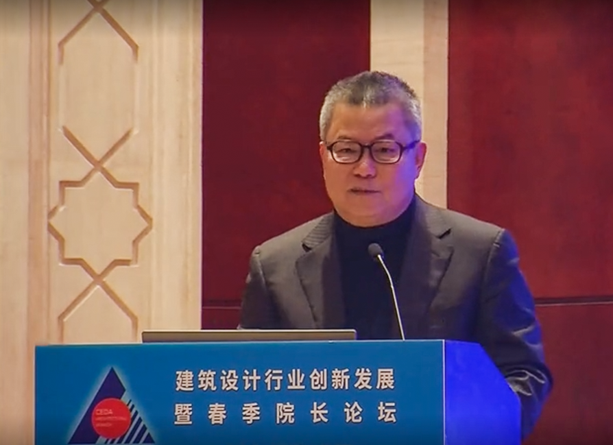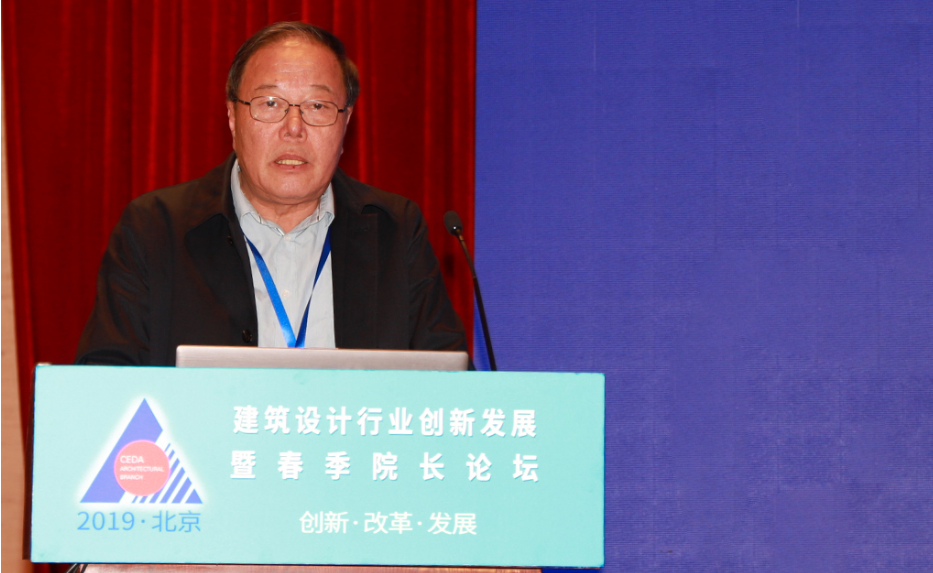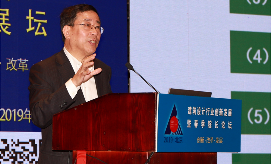 第一位作主题报告的嘉宾是徐全胜,他的演讲题目是“设计主业的创新发展思考”。报告中提出了当前形势下建筑设计主业发展的几点新机遇:一是促进行业引领性企业建成“现代城市建筑的高端平台型服务机构与集成技术解决方案提供商”;二是要建立完整的建筑与建筑设计的价值体系;三是对标国际标准职业模式,加强建筑师负责制,完善建筑设计职业模式;四是结合社会需求与科技水平的提升,利用先进数字辅助设计技术,采用协同集成的创新的设计及其项目管理方法;五是采用“设计+项目管理”一体化模式,拓展新业务;六是探索新的经营管理模式。他总结道:在大环境处于高质量发展转换期,各单位应依据自身情况,抢抓机遇、调配资源、积极应对,推动自身和行业达到新的提升。