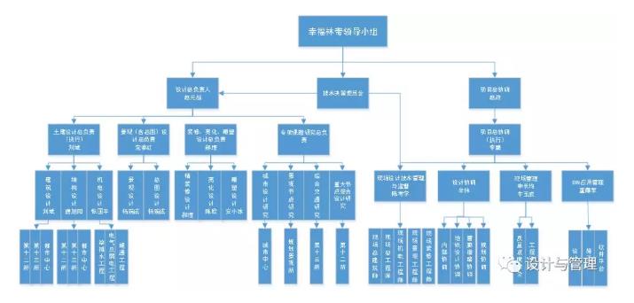 幸福林带项目体量大、涵盖业态多,技术复杂,参与设计的单位和部门多达20余个。面对错综复杂的设计与技术管理问题,将科学性、文化性、时代性和地域性“四性融合”在项目设计中,强化到设计管理中去。我院主要从三个方面着手进行组织与管理。