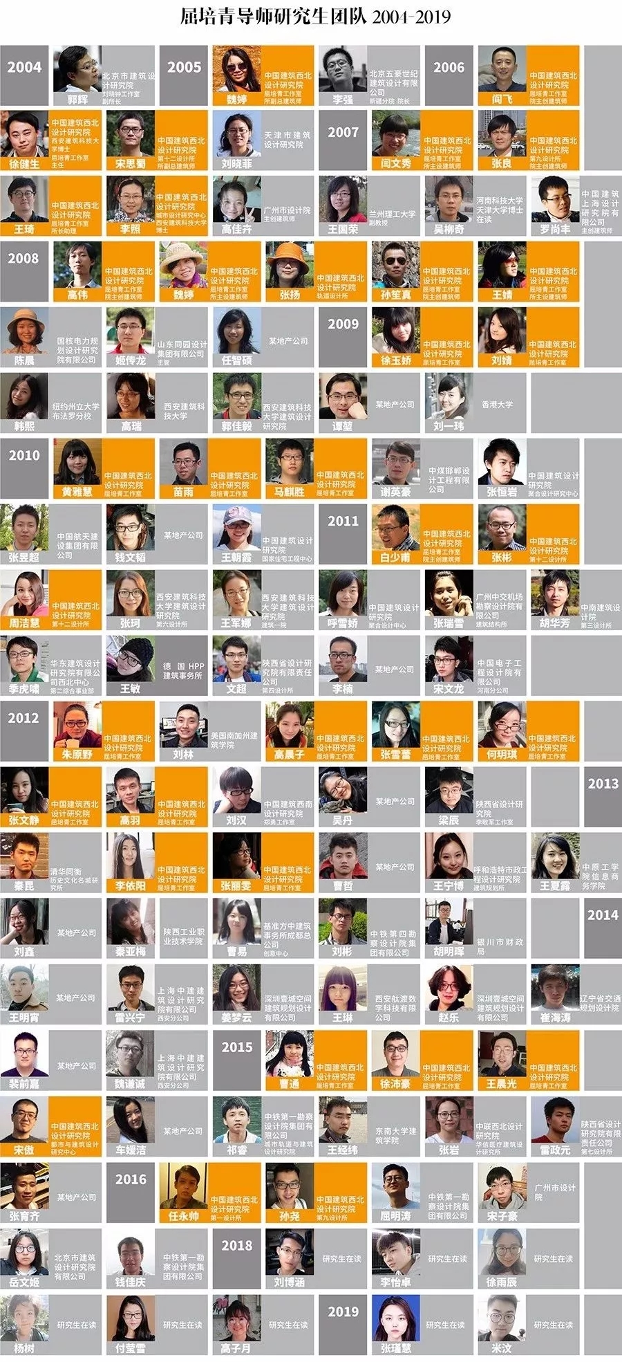 第三年:通过第二年参与的实际创作项目,开始选择论文题目及开始撰写论文。通过十几年的产学研一体化的培养,我共培养了100名研究生。这一批批研究生有38名留在了中建西北院,有27名留在了屈培青工作室,其他学生考进了全国各大设计院,通过实际工作的锻炼他们陆陆续续都成为了各设计院的骨干力量。
