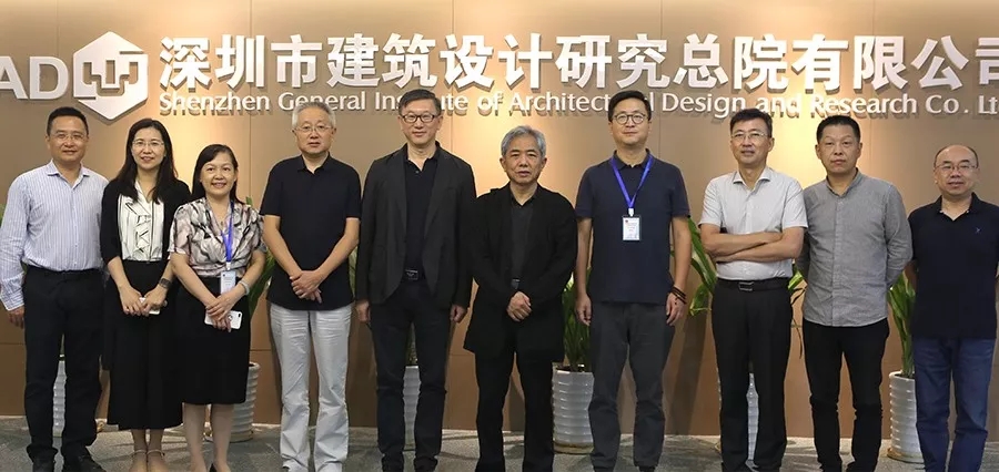 ▲ 2019年9月赴深圳市建筑设计研究院与黄晓东工作室交流会:总师工作室总建筑师与孟建民院士合影(左起:黄晓东、张超文、吴静、屈培青、刘晓钟、孟建民院士、郑勇、陈一峰、洪卫、张立建)