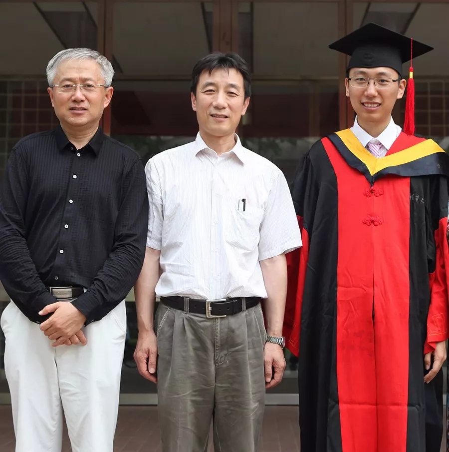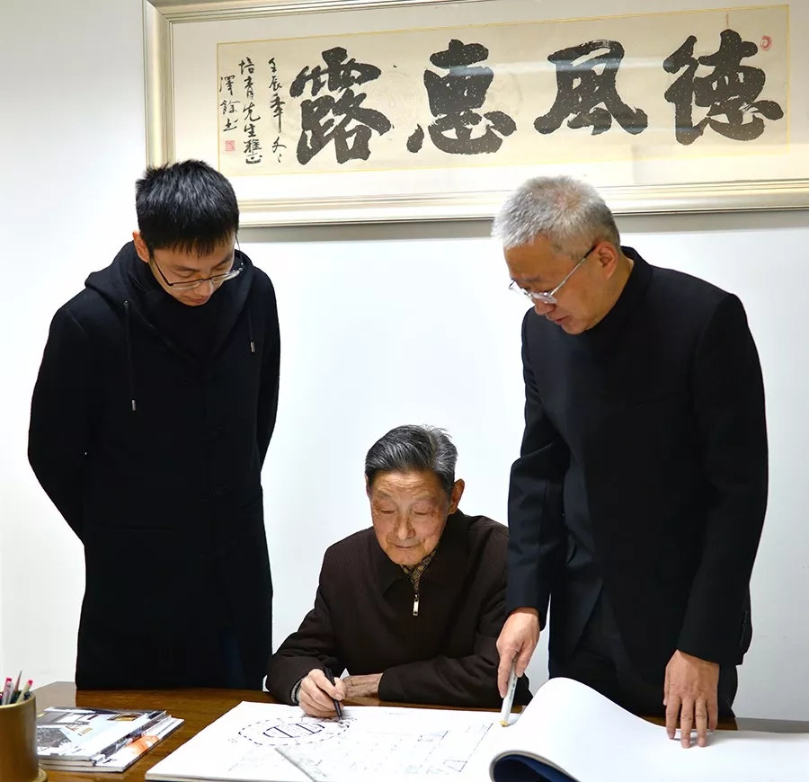 ▲ 屈培青父子和清华大学建筑学院庄惟敏院长合影(左起:屈培青、庄惟敏、屈张)