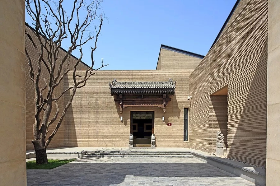贾平凹文化艺术馆位于西安市临潼,建筑方案以关中民居与现代建筑的对话为切入点,将关中民居四合院的平面和现代简约的几何体组合为一体,并通过叠加、旋转、碰撞、割裂,组合成了一组新的大小不同的空间序列。其中主馆建筑以关中四合院正房与厢房围合的院落平面和主馆中的庭院,正好与贾平凹的“凹”字的形式合而为一,具备了很强的空间感和主导空间。由于将第二组现代几何体与主馆在平面及空间上进行旋转、裂变,在关中四合院的周围割裂出几组不规则的三角形院落空间,三角形院落相比正南正北的传统型院落,少了死板,多了碰撞。这些空间依附和穿插在主体内外,但又不脱离主体,形成了适度和交错分散的多院落体系。创造出不同于普通形式的空间感,反映出传统建筑与现代建筑的融合与碰撞,这也正是贾老师文学作品中对文化转型中传统与现代的碰撞与冲突的主要风格。