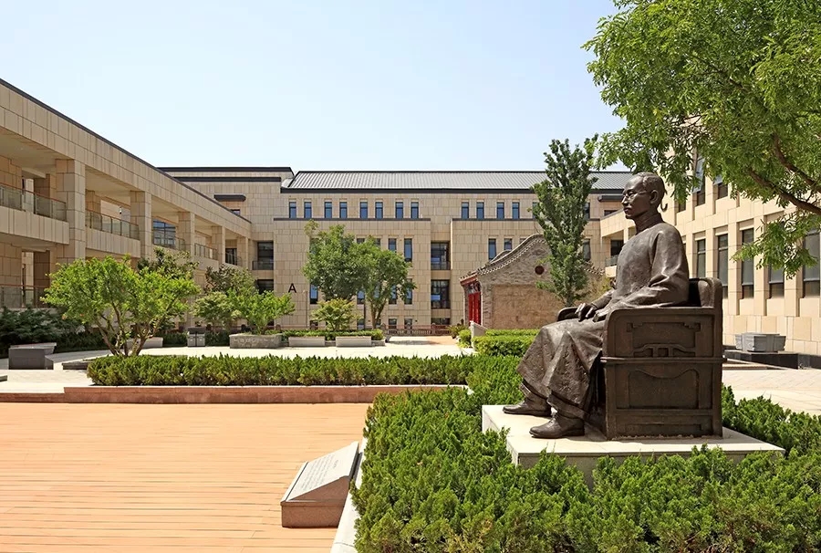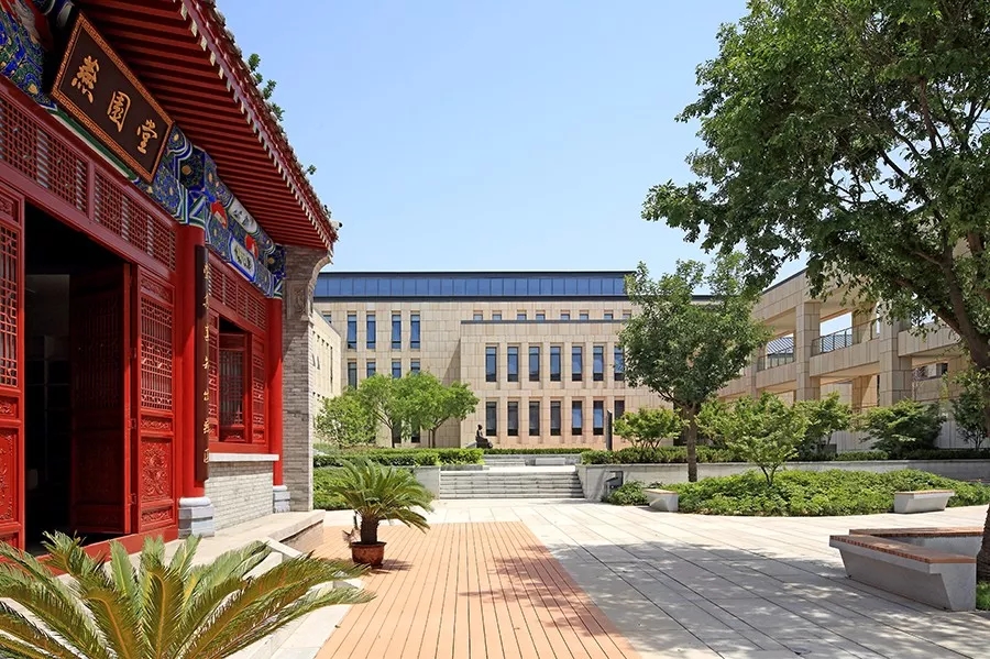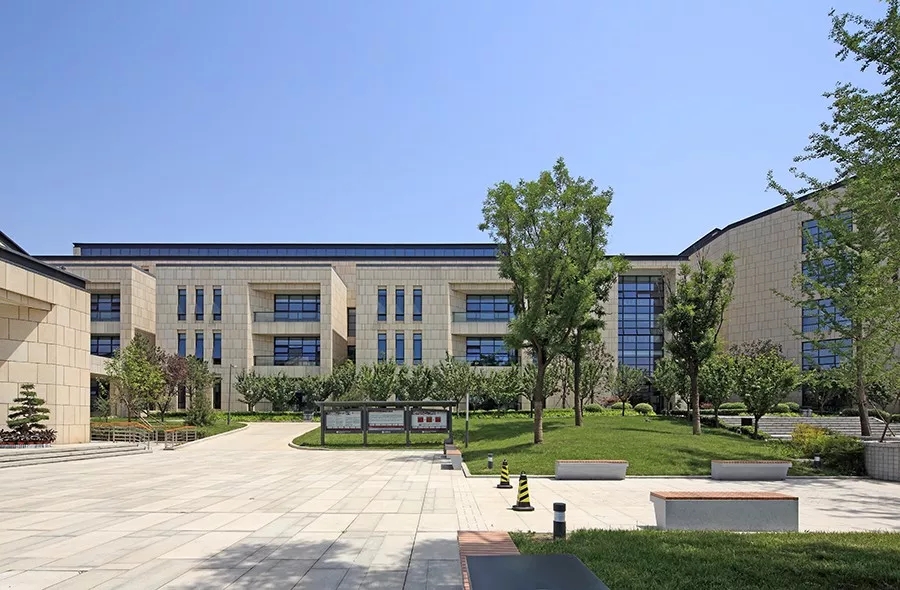 北京大学光华管理学院西安分院位于陕西历史文化旅游景区临潼,在该项目总体设计中,我们采用关中传统书院的布局手法,通过建筑与场院的空间围合成序列空间,并通过坡地的高差起落,形成了一组建筑造型高低错落、建筑平面围合有序的建筑群落空间,同时将关中两进院子的手法通过整合,割裂与放大,应用到建筑组团内形成一组半开放式的教学布局,学院教学楼通过连廊相连并与庭院组合划分了不同的大小室外空间,设计将中国传统书院与陕西传统民居的精髓根植于北大光华学院中,使庭院形成了整个学院的空间场院的核心。同时,在学校庭院中设计了一座北京传统卷棚老宅作为学院的交流会客场所,提名“燕园堂”,以此来唤起人们对北京大学老建筑的情感共鸣,北大校园与关中书院由此展开了一场“穿越时空”的“亲密对话”。关中地区素有“陕西屋子半边盖”的说法。我们以关中传统民居这一特点为基础,并进行了抽象与演绎。建筑造型方面,我们继承了关中民居——屋子半边盖的建筑形式,通过新中式的构图形式与现代半边屋的几何构图形式有机组合,将北大校园文化与关中地域文脉有机结合。