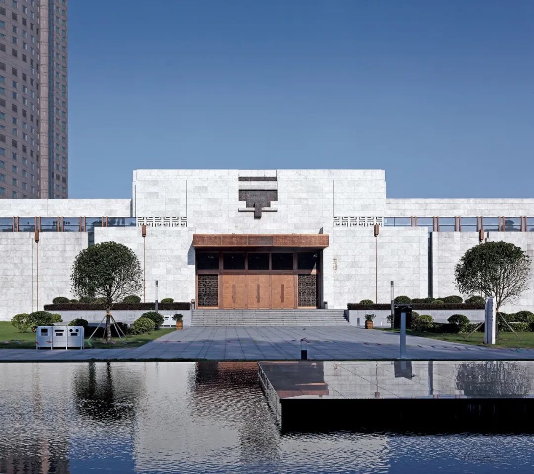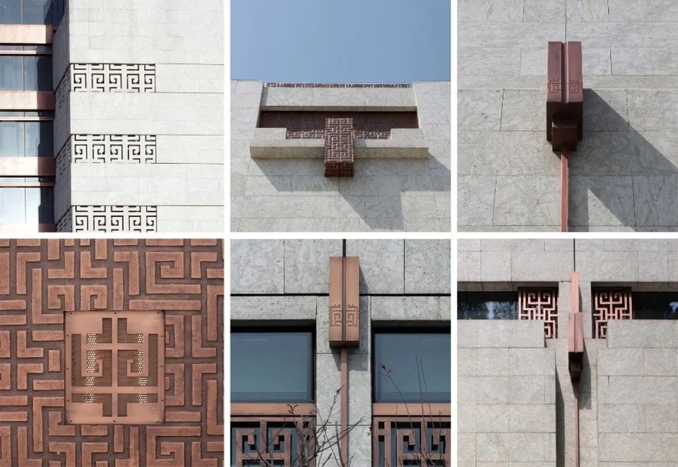 项目在钱江新城一众的建筑天际线中,首献标志性的中式建筑符号。项目材料多用仿铜材质。