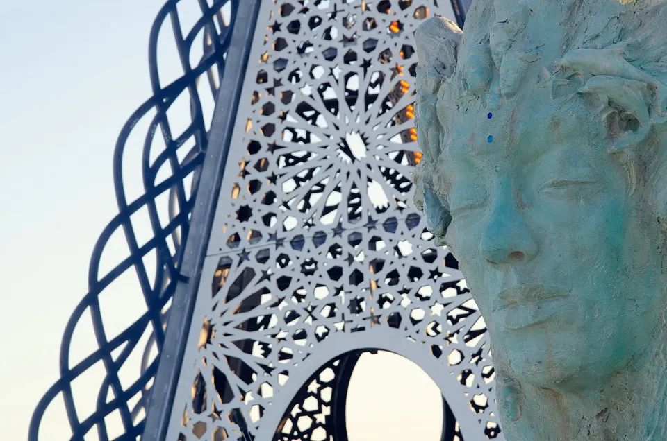 地点:多米尼加 / 设计:Galerie Philia标新立异的雕塑椅Ignis Ossium,由墨西哥跨专业设计工作室ACOOCOORO设计,通过铸造厂Fundición Artística Galindo用青铜铸成.地点:美国 / 设计:Form4 ArchitectureJKMM Architects由Mary Graham创作的四副椭圆形画作重新描述了Andromeda作为一个强大独立女性的形象。装置外部摆放着由Mischell Riley创作的8英尺高的青铜头像雕塑。在夜里,装置将从内部照亮,将美妙的光影投射到夜间的沙漠上。